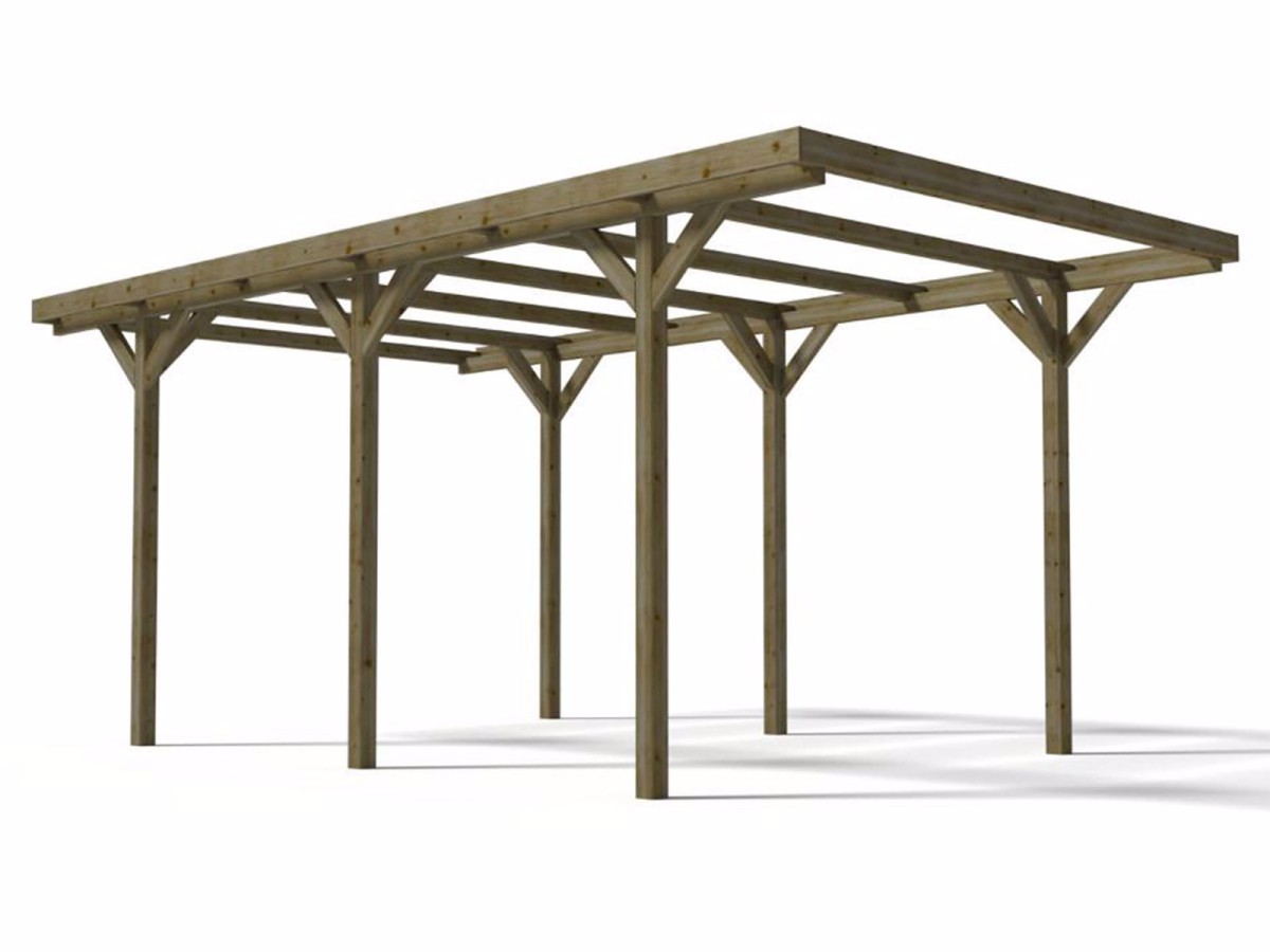 Bestaat uit 6 palen: 70x70 mm Liggers: 70x70 mm Dakbalken 70x70 mm. Voorzien van montagemateriaal en handleiding. Doorrijhoogte: 210 cm. De carport wordt geleverd als bouwpakket zonder paalankers en dakplaten. Afmeting pakket: 80x240x50 cm, 250 kg.