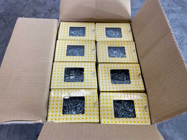 1 stuk = een omdoos van 16 kleinere doosjes met in elk 1000 schroeven (Dit kavel bevat in totaal 16.000 schroeven).