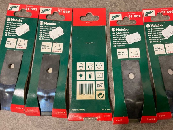 Diverse krabbermessen en spatels voor metabo DS E 170 & DSE 300. Zie foto's voor details.