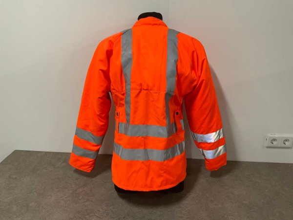Reflecterend jack met bescherming tegen snijwonden. Nog betere beveiliging tegen snijwonden en reflecterende strepen. Twee borstzakken met reflecterende stroken en signalisatiekleur, met snijbescherming bij de schouders, borst en armen. 85% polyester, 15% katoen. EN 471 en EN 381, beschermingsniveau 1 (=^ 20m/1). Technische gegevens: Maat: 56. Snijprotectieklasse 1. Stofkwaliteit g/m 270. UV-beschermingsfactor 80.
