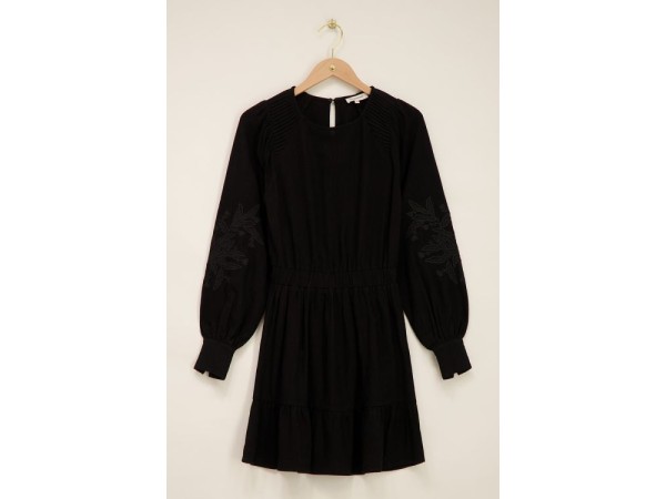 Zwarte jurk met embroidery mouwen ( Maat: S )