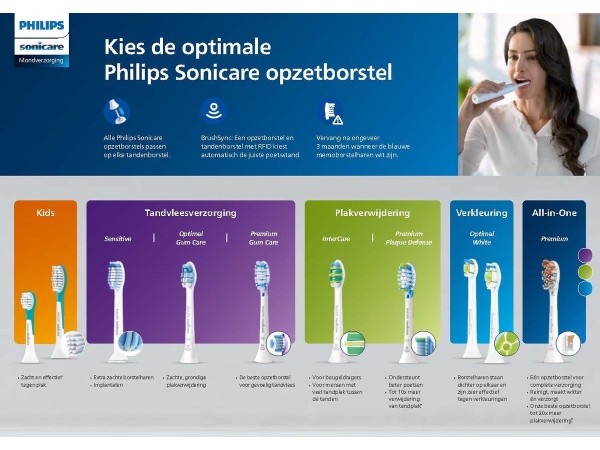 De Philips Sonicare ProtectiveClean HX6877/34 Duo zorgt voor wittere tanden en ultieme reiniging. Na slechts 1 week voel je het verschil van de zachte reiniging met de poetsdruksensor. Deze helpt je jouw tandvlees te beschermen tegen te hard poetsen. Verder beschikt de Protective Clean over 3 poetsstanden (clean, white en Gum Care) en 3 intensiteitstanden. Vraag je je weleens af welke poetsstand en intensiteit je moet gebruiken? De BrushSync-koppeling laat aan de tandenborstel weten welke opzetborstel je gebruikt, en daardoor weet de tandenborstel exact welke poetsstand en intensiteit optimaal zijn! Voordelen Zorgt voor wittere tanden in slechts 1 week. De poetsdruksensor waarschuwt als je te hard poetst. De tandenborstel heeft drie poetsstanden (Clean en White en Gum Care) en intensiteiten De tandenborstel is twee weken te gebruiken zonder op te laden. De tandenborstel geeft een seintje wanneer je je de opzetborstel moet vervangen. Kenmerken van de Philips SoniCare ProtectiveClean HX6877/34 Bewezen verbetering van de mondhygiëne Veilig en zacht voor gevoelige plekken, beugels, behandelde tanden en vullingen Wittere tanden in slechts één week Ontworpen voor u Aanmoediging om grondig te poetsen Maakt het reizen makkelijker voor u Innovatieve technologie Laat weten wanneer je te hard poetst Weet altijd wanneer je de opzetborstel moet vervangen Philips Sonicare geavanceerde sonische technologie Verbindt de slimme teandeborstel met slimme opzetborstel Optimaliseer het poetsen Drie poetsstanden, drie intensiteiten Selecteer de optimale poetsstand en intensiteit BrushSync-vervangingsherinnering Alle opzetborstels slijten na verloop van tijd. Aangeraden wordt om je opzetborstel dan ook om de drie maanden te vervangen. De BrushSync-technologie houdt precies bij hoe lang je je opzetborstel gebruikt, maar ook hoe hard je poetst. Wanneer het tijd is om de opzetborstel te vervangen gaat er een lampje branden en hoor je een korte piep. De tandenborstel heeft een microchip detecteert en synchroniseert de opzetborstel met de tandenborstel. Hierdoor worden vervangingsherinneringen mogelijk gemaakt. Handige timers De QuadPacer laat weten wanneer je klaar bent met poetsen en hoeveel tijd je hebt besteed aan het schoonmaken van elk deel van je mond. De Smarttimer laat weten wanneer je de aanbevolen 2 minuten hebt gepoetst. Philips Sonicare-technologie Hoe werkt de Philips Sonicare-technologie? De opzetborstel en handvat versterken de sonische technologie en zorgen voor een optimale reiniging. De snelle trillingen in het handvat zorgen namelijk voor 62.000 poetsbewegingen per minuut. Hierdoor gaat je tandpasta goed schuimen, welke diep langs je tanden en tandvlees komt. Meegeleverde accessoires ProtectiveClean tandenborstel: 2 stuks Opzetborstels: 2 stuks Optimal White-standaard Reisetui: 2 stuks Oplaadstation: 1 stuk