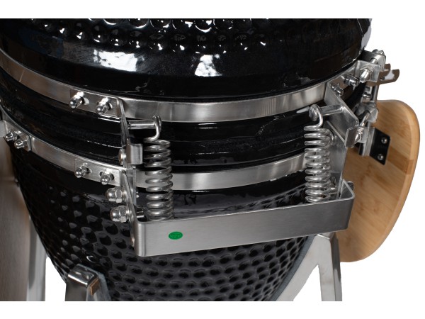 Kamado is het Japanse woord voor ‘kachel’ of ‘fornuis”. Archeologen hebben ontdekt dat de eerst gevonden resten van de huidige Kamado modellen zo’n 4.000 jaar oud zijn, en sindsdien is deze barbecue geëvolueerd tot een culinaire alleskunner in veel Michelin sterren restaurants. Vanwege de uitstekende warmte isolerende eigenschappen van de keramische schaal (bestand tot zo’n 1.000 graden Celsius), blijven vleessappen als bij geen enkel andere barbecue behouden, en kan men vanwege de precieze controle van de luchtstroom naast grillen en roken, tevens denken aan het bakken van pizza’s en brood. Nog nooit kwam een gerecht beter en smaakvoller van de barbecue ! Kenmerken: • Kleur: Zwart • Uitvoering 23.5”; Diameter grilloppervlak 52 cm. • Hoogwaardig geglazuurd industrieel keramiek, welke bestand is tot temperaturen van zo’n 1.000 graden Celsius. • Dankzij de keramische schaal en gecontroleerde luchtstroom wordt het vlees of ander gerecht sappiger en malser dan in welke andere stalen barbecue ook ! • Vanwege het ventilatierooster aan de onderzijde i.c.m. met de zgn. margrietschijf aan de bovenzijde is de temperatuur uitermate goed te controleren en in te regelen. • 23.5” uitvoering standaard uitgevoerd met degelijk RVS verrijdbaar onderstel. • Incl. twee afneembare en inklapbare zijplateaus en verrijdbaar degelijk RVS onderstel v.z.v. metalen wielen met rem-inrichting • Middels de temperatuur meter op het deksel is de temperatuur goed te volgen • Standaard geleverd incl. Patton Bluetooth Smart thermometer (incl. 1 sonde) geïntegreerd in het werkblad De Patton Bluetotth Smart I thermometer maakt middels Bluetooth contact met je smartphone of tablet. Download de gratis app uit de Appstore of Google Play Store en koppel deze aan je Patton Bluetooth Smart Thermometer, waarna je de temperatuur van je gerecht op afstand kunt volgen. Technische informatie: • Bluetooth Smart (4.0) • Geschikt voor iPad (mini, 3E generatie en nieuwer) • Geschikt voor iPhone 4S en nieuwer, iPod Touch 5e generatie en nieuwer • Geschikt voor veel Android Smart devices met Bluetooth 4.0 / 4.3 en nieuwer • Bereik tot ca. 10 mtr. • 1 x CR2032 batterij (inclusief) • Incl. demontabele 1.10 mtr. kabel incl. 10 cm. RVS sonde • Temperatuur bereik: -30 tot +300 Graden Celsius • Touchscreen display incl. backlight • Camera functie waarmee je jouw mooiste gerechten of wel (BBQ) gezelligheid kunt fotograferen, en deze middels de social media share-functie zou kunnen delen.. • Bediening middels “SmartThermo” app via jouw (mobile) device naar keuze
