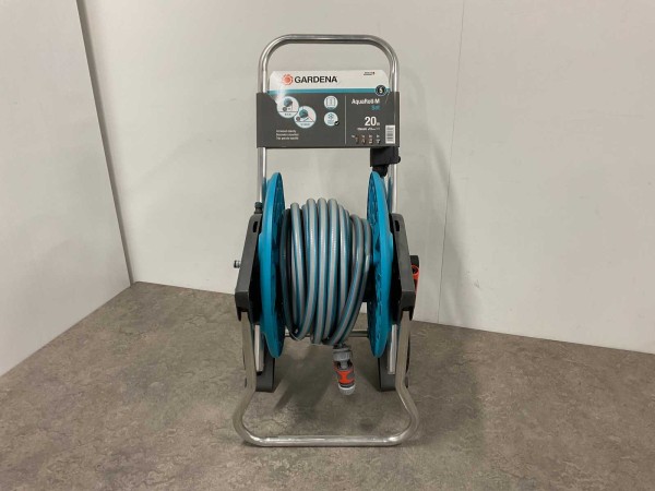 De Gardena AquaRoll M zorgt voor ruimtebesparende opslag van de tuinslang en is handig in gebruik. De ergonomische slinger met zachte kunststof componenten zorgt voor het gemakkelijk oprollen van de slang. De slang is uitgerust met Original Gardena System componenten en de tuinspuit hangt aan de praktische vasthoudclip op het bovenframe. Innovatieve vorstbestendigheid. Slang lengte: 20 m. Slangdiameter: 13 mm. Set met aansluitstukken Classic Hose, 1 x Cleaning Nozzle, 1 x Water Stop, 3 x Hose Connector, 2 x Tap Connector, 1 x Adapter
