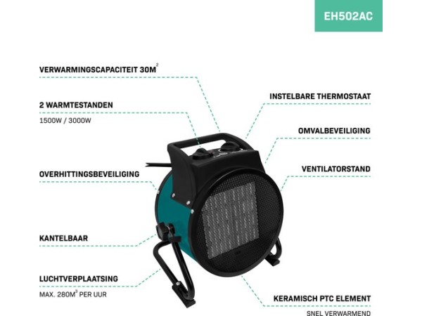 Wil jij klussen, hobbyen of gewoon lekker relaxen tijdens de koudste maanden van het jaar, maar heb je geen verwarming in jouw favoriete ruimte? Met deze VONROC ventilatorkachel verwarm je ook tijdens de koude dagen de heerlijke momenten voor jezelf. Deze elektrische kachel is ook zeer geschikt voor het verwarmen van bijvoorbeeld je caravan, camper of voortent bij frisse zomeravonden. Dankzij de traploze temperatuurregeling stel je zelf gemakkelijk de gewenste temperatuur in. De kachel is voorzien van een beveiliging tegen oververhitting en omvallen. De elektrische verwarming is geschikt voor het verwarmen van binnenruimtes tot 30m2.