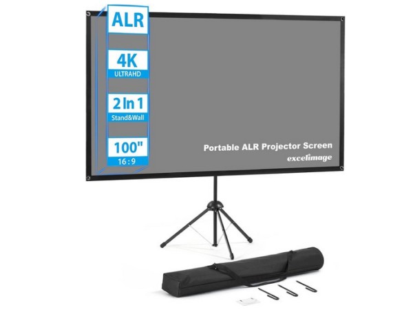 Productbeschrijving Het Projectorscherm met Statief biedt een meeslepende kijkervaring, zowel binnen als buiten, voor al je favoriete films, tv-shows en presentaties. Met een indrukwekkende grootte van 100 inch en een breedbeeldverhouding van 16:9, zorgt dit scherm voor een realistische en meeslepende kijkervaring. Het ALR (Ambient Light Rejecting) materiaal zorgt voor een hoog contrast en heldere beelden, zelfs in omgevingen met veel omgevingslicht, waardoor je altijd kunt genieten van levendige en scherpe projecties. Het lichtgewicht en compacte ontwerp van het scherm, in combinatie met het handige statief, maakt het gemakkelijk te vervoeren en op te zetten, waar je ook bent. Of je nu een thuisbioscoop wilt creëren in je woonkamer, een filmavond wilt organiseren in de achtertuin, of een presentatie wilt geven op het werk, dit projectorscherm met statief biedt de perfecte oplossing. Geniet van een bioscoopervaring in het comfort van je eigen huis met dit veelzijdige en gebruiksvriendelijke projectiescherm.