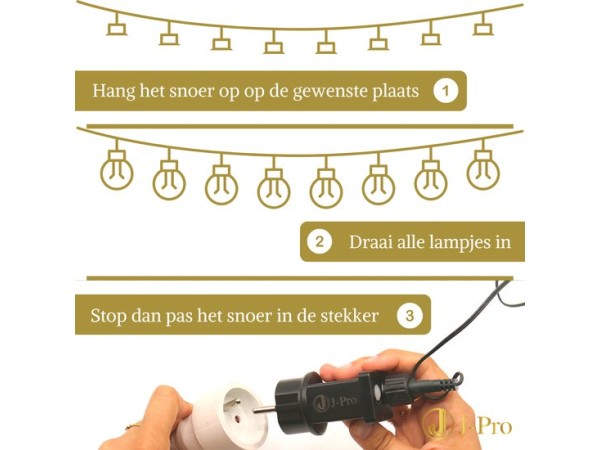 - Lampen zijn ø4cm groot, met 25cm tussen elke lamp op een 12,5-meter snoer.