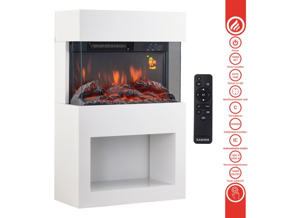 Elektrokachels van KAMINIO zijn het nieuwe must-have voor elke ruimte De moderne elektrische haard HENRI van KAMINIO verandert elke ruimte in een oase van welzijn. Spannend design, hoogwaardige afwerking en uitgebreide uitrusting zorgen voor een premium haardervaring. Geniet van gezellige, warme avonden bij de haard met het hele gezin. Moderne LED-technologie en een uitgekiende vlamgenerator creëren het natuurlijke vlambeeld. Het brandgedrag is dankzij de niet-statische vlamfrequentie zeer realistisch. Vrijwel geruisloos stroomt de warme lucht de omgeving in en zorgt voor een zeer aangename warmte-ervaring. De uitrusting van elektrische KAMINIO-haarden laat niets te wensen over. Een thermostaat zorgt voor constante vooraf ingestelde temperaturen, die door een timer aan individuele verwarmingsperiodes kunnen worden aangepast. De bediening gebeurt direct via het bedieningspaneel op het apparaat of de meegeleverde afstandsbediening. KAMINIO-elektrische haarden zijn eenvoudig te gebruiken in alle woonruimtes. Er is geen elektricien, schoorsteenveger of vervelende vergunning nodig. Gewoon Plug & Play in elk huishoudelijk stopcontact. Zonder open vlam produceren elektrische haarden noch as noch roet en zijn ze vooral in huishoudens met kinderen en huisdieren bijzonder veilig te gebruiken. Over het algemeen zijn elektrische haarden de moderne, en bij gebruik van groene stroom, CO₂-neutrale verwarmingsalternatief. Voor de eigen woonruimtes net zo goed als voor vakantiehuizen, praktijken, restaurants of hotels. De flexibiliteit maakt elektrische haarden tot een hoogwaardig woonaccessoire. Alle KAMINIO-producten zijn ontworpen voor veilig gebruik en beschikken over de nodige systemen, zoals oververhittingsbeveiliging en open-raam-detectie. Alle apparaten zijn volledig getest en hun veiligheid is bevestigd door de CE-certificering. Kenmerken: Natuurgetrouwe vlammenffect Hoogwaardige afwerking Stabiele metalen behuizing Vlammenbeeld en verwarming samen of afzonderlijk te gebruiken Thermostaat voor constant, vooraf ingesteld temperatuurniveau Veilig door oververhittingsbeveiliging en open-raam-detectie Klaar gemonteerd Snelle ingebruikname Geschikt voor alle ruimtes Technische gegevens: Afmetingen: 48 x 21,7 x 75 cm Afmetingen raam: 44,5 x 24 cm Kabellengte: 1,7 m Gewicht: 14,5 KG Details: Bevat bouwmateriaal Eenheid en mantel zijn één geheel Stevige metalen mantel Stroomverbruik vlam: 6 watt Stroomverbruik sfeerverlichting: 10 watt Krachtige verwarming: max. 2000 watt Levering in 1 pakket Leveringsomvang: 1x Elektrohaardunit 1x Afstandsbediening 1x Set Batterijen 1x Vloerglijders 1x EU en UK stekker 1x Gebruiksaanwijzing