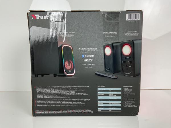 Geniet van goed geluid met de Trust GXT635 RUMAX RGB Draadloze Speakerset, aangevuld met een vicuele beleving dankzij de RGB verlichting. Met de twee speakers en subwoofer hoor je altijd de juiste tonen. Geluid zoals het bedoeld was. Liever meer of minder bass of treble? Pas dit eenvoudig aan met de knoppen op de achterkant. Of je deze set nu via een HDMI-ARC aansluiting met je televisie wilt verbinden of draadloos met je telefoon, de mogelijkheden zijn veel.