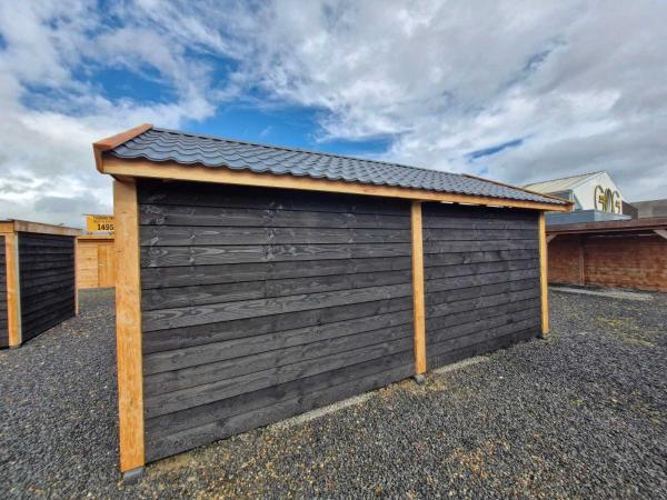 Wanden worden geleverd in los materiaal Douglas Zweeds rabat 1,1x2,7mm dik zwart geïmpregneerd op vuren regelwerk 40x60mm