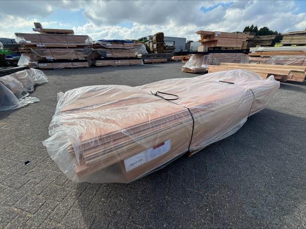 Dakmaat: 500x300cm. Materiaal: Douglas fijnbezaagde palen 120x120cm, liggers 120x120cm, balken 5x15cm. Geïmpregneerd: nee. Dakplanken: 18mm, tandgroefplank, vuren onbehandeld. Dakbedekking: dakleer. Doorloophoogte: 215cm onderzijde, draagbalk aan de voorzijde. Voorzien van montagemateriaal en handleiding. Overkapping wordt als een bouwpakket geleverd. De afmetingen van dit pakket zijn: 400x125x100 cm, 550 kg.