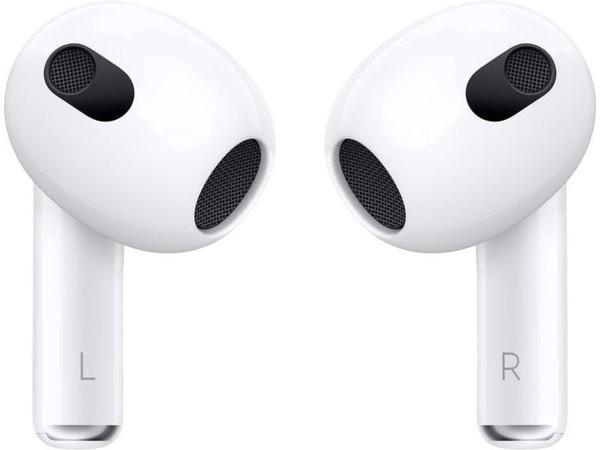 De nieuwe AirPods 3 volgen de razend populaire AirPods 2 op. De AirPods 3 zijn voorzien van een vernieuwd compact design. Ook is de opbergcase draadloos oplaadbaar. Iets wat eerder alleen Pro modellen konden. Let op: dit kan enkel met een QI-charger welke je niet standaard meegeleverd krijgt. Dankzij de ingebouwde H1-chip van Apple verbind je je nieuwe AirPods binnen enkele seconden met al je Apple apparaten. Door Spatial Audio komt het geluid vanuit iedere hoek waardoor het lijkt alsof je midden in je favoriete serie/film zit. Ook zijn de AirPods 3 IPX4 waterbestendig, hierdoor kun je prima sporten met de oordopjes. De AirPods laden automatisch op in de opbergcase. Met volle oordopjes geniet je tot 6 uur van je favoriete muziek. Met de batterij in het opbergdoosje heb je in totaal 24 uur luistertijd. Compleet nieuw design AirPods 3 zijn licht van gewicht en hebben een aansluitende pasvorm. Ze hebben precies de juiste hoek voor optimaal draagcomfort en geluid. De steel is 33 procent korter dan bij AirPods van de tweede generatie en bevat een druksensor om snel de muziek te regelen of telefoontjes aan te nemen. Ruimtelijke audio met dynamische hoofdtracking Het geluid klinkt overal om je heen, zodat je helemaal opgaat in je muziek, serie of film. De gyroscopen en versnellingsmeters in AirPods volgen je hoofdbewegingen, zodat het klinkt alsof je midden in de muziek of scène zit. Adaptieve EQ Muziek wordt automatisch afgestemd op de vorm van je oor. De microfoons aan de binnenkant detecteren wat jij hoort, waarna de middelhoge en lage frequenties worden bijgesteld. Zo hoor je de details in elk nummer. Langere batterijduur De batterijduur is een uur langer dan bij AirPods van de tweede generatie, en is goed voor tot 6 uur luistertijd en tot 4 uur gesprekstijd. Dankzij de verbeterde huiddetectiesensor gaan AirPods op het juiste moment aan of uit, zodat de batterij langer meegaat. Met maar 5 minuten opladen heb je al ongeveer een uur luister‑ of gesprekstijd. De MagSafe-oplaadcase biedt een batterijduur van meer dan 30 uur, en is compatibel met MagSafe- en draadloze opladers. Zweet- en waterbestendig AirPods en de MagSafe-oplaadcase zijn waterbestendig volgens de IPX4-norm, en dus prima bestand tegen een flinke bui of een stevige work‑out. In alle opzichten magisch Instellen is zo gebeurd: zodra je ze uit de case haalt, zijn ze direct klaar voor gebruik. Je kunt automatisch schakelen tussen je Apple devices. De in-ear-detectie kent het verschil tussen je oor en andere oppervlakken. Met ‘Kondig meldingen aan met Siri’ kun je je meldingen via je AirPods laten voorlezen. En met ‘Audio delen’ kun je met z’n tweeën naar hetzelfde nummer of dezelfde serie luisteren, allebei op je eigen AirPods.